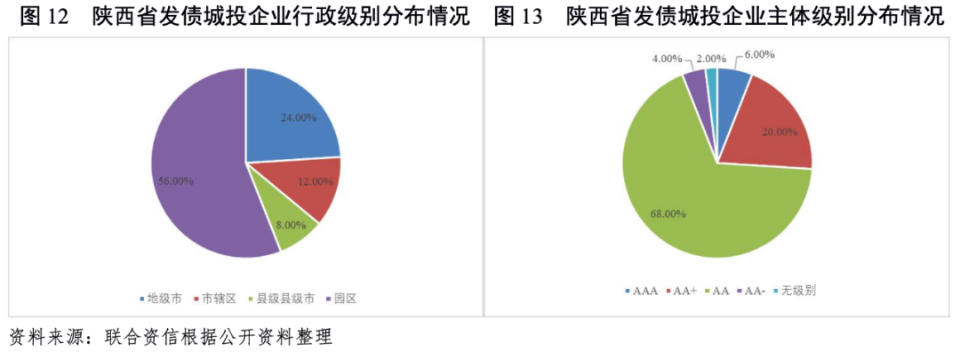 陜西省發債城投企業數量相對較少,信用等級以AA為主,AA+及以上的發債城投企業集中在西安市、榆林市和延安市。從行政區域看,陜西省發債城投企業集中在西安市,且以園區類城投企業為主。