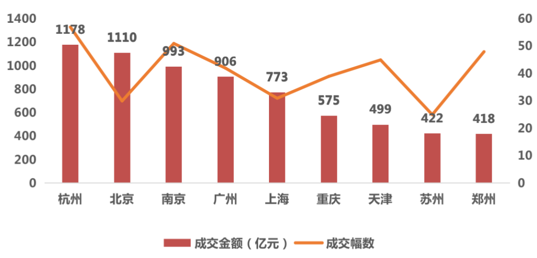 從總金額來看,上海的成交總價(jià)在首批集中供地的22城中排第五位,前四位分別為杭州、北京、南京、廣州。