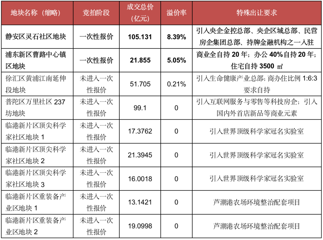表:上海首輪集中供地中出讓要求較為嚴(yán)格的土地成交情況