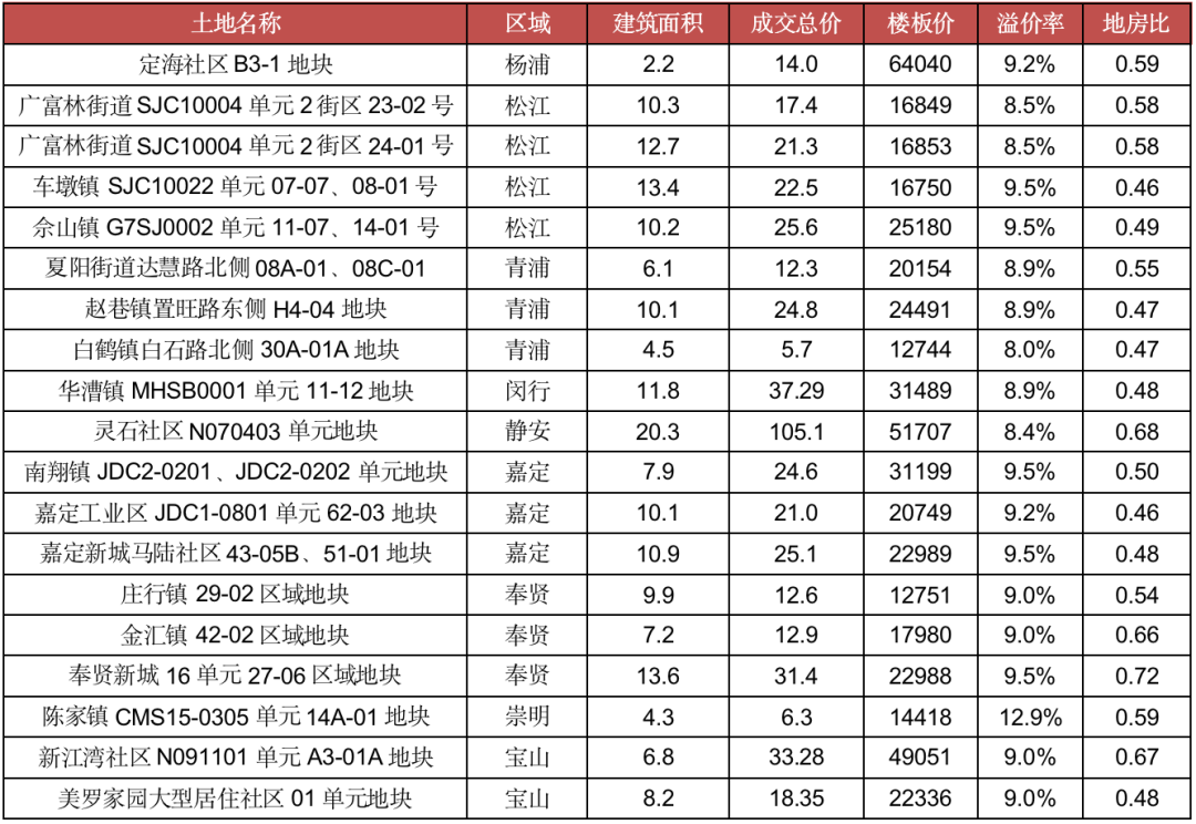 表:上海首輪集中供地中典型地塊地房比