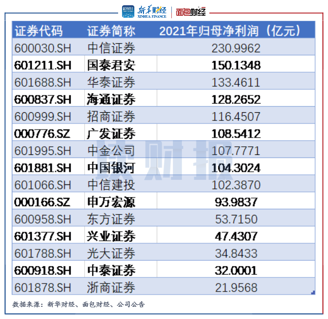 截至3月30日,共有26家上市券商發布2021年年報,其中中信證券、國泰君安、華泰證券等9家大型券商當年的歸母凈利潤超過百億元。