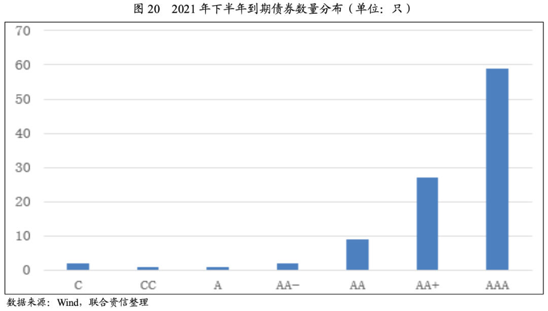 2021年下半年,債券到期規模同比下降,到期債券的主體評級以AAA為主,化工行業整體信用風險較小,評級展望為穩定。