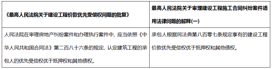 盡管物權優于債權是民法的基本原則, 但是在特殊情況下, 出于對特別法益的保護, 法律對某些特殊債權予以特別保護甚至使其有優于擔保物權的效力, 在房地產行業, 抵押權人需要特別注意的就是建設工程價款的債權。拿到了房產/在建工程抵押權的債權人同樣需要為建設工程價款“讓路”。