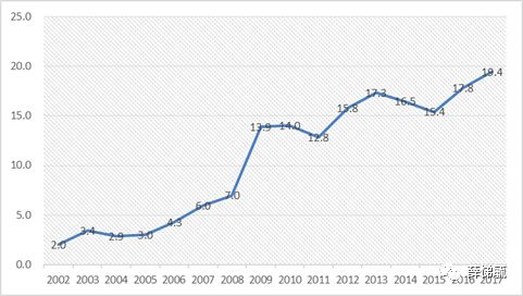 圖5.2003-2018年非金融類公司標準化債券歷年余額