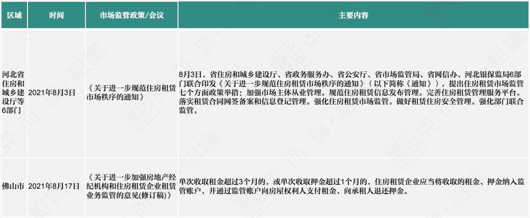 此外,河北省住房和城鄉(xiāng)建設廳等6部門印發(fā)《關于進一步規(guī)范住房租賃市場秩序的通知》;佛山市印發(fā)《關于進一步加強房地產(chǎn)經(jīng)紀機構和住房租賃企業(yè)租賃業(yè)務監(jiān)管的意見(修訂稿)》;成都在全國率先出臺了《成都市人民政府辦公廳關于加快發(fā)展保障性租賃租房的實施意見》。