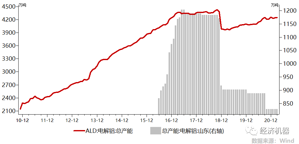 2)我國供給側(cè)改革。這個是過去幾年,影響大宗商品供給的最重要因素。過去幾年,我國對鋼鐵、水泥、電解鋁、玻璃等行業(yè)進行了力度空前的供給側(cè)改革,核心就是去產(chǎn)能。在需求保持穩(wěn)定,甚至小幅增長情況下,供給持續(xù)壓縮,使“4萬億刺激”導致的產(chǎn)能過剩問題近年來顯著緩解。以電解鋁為例,“合規(guī)產(chǎn)能”從最高的4428萬噸,一度降至3963萬噸。考慮到之前有很多不合規(guī)產(chǎn)能在運行,實際去產(chǎn)能力度更大。其中山東產(chǎn)能從1200萬噸,降至828萬噸,降幅高達30%。