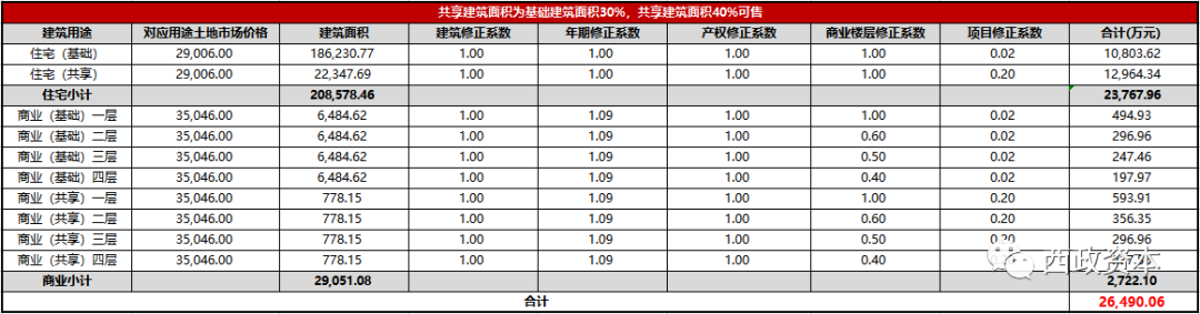 5. 項目各用地類型(如住宅、商業(yè)等)地價計算