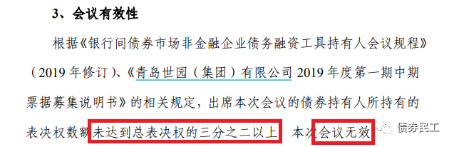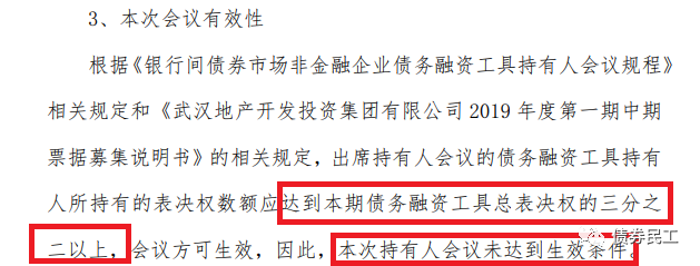公告,“”2021年第一次持有人會(huì)議,所有持有人均未對議案進(jìn)行表決,會(huì)議無效。從實(shí)踐來看,這種所有持有人均為表決的情況也極為罕見。