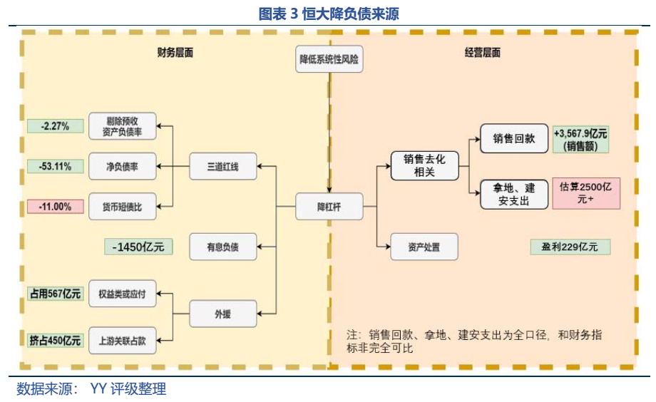 1、有息負債方面,凈償還了1450億,比恒大地產多還了500億;