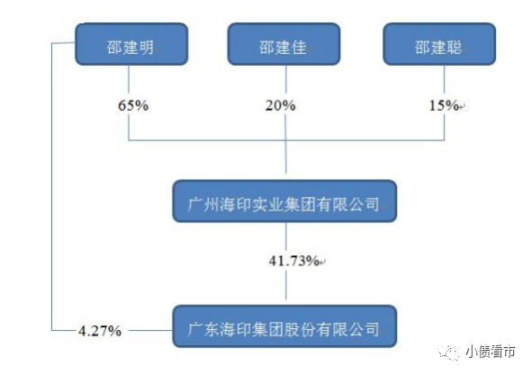 從股權結構看,海印股份的控股股東為海印集團,持股比例為41.73%,公司實際控制人為自然人邵建明、邵建佳和邵建聰。