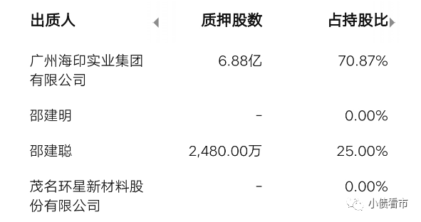 截至2022年2月11日,海印股份控股股東海印集團質押公司股份數量6.88億股,占其持有股份的70.87%,質押比例較高。