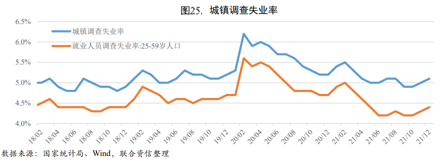 就業(yè)形勢總體基本穩(wěn)定。2021年城鎮(zhèn)新增就業(yè)1045萬人,完成全年目標(biāo)任務(wù)的95%;城鎮(zhèn)調(diào)查失業(yè)率均值為5.10%,低于全年5.50%左右的調(diào)控目標(biāo)。從結(jié)構(gòu)看,重點群體就業(yè)情況有所改善。2021年下半年,就業(yè)主體人群(25-59歲人口)失業(yè)率一直穩(wěn)定在4.50%以下,低于前兩年同期水平;2021年末,全國農(nóng)民工規(guī)模達到2.93億人,較上年末增加691萬人,恢復(fù)至疫情前2019年末水平。