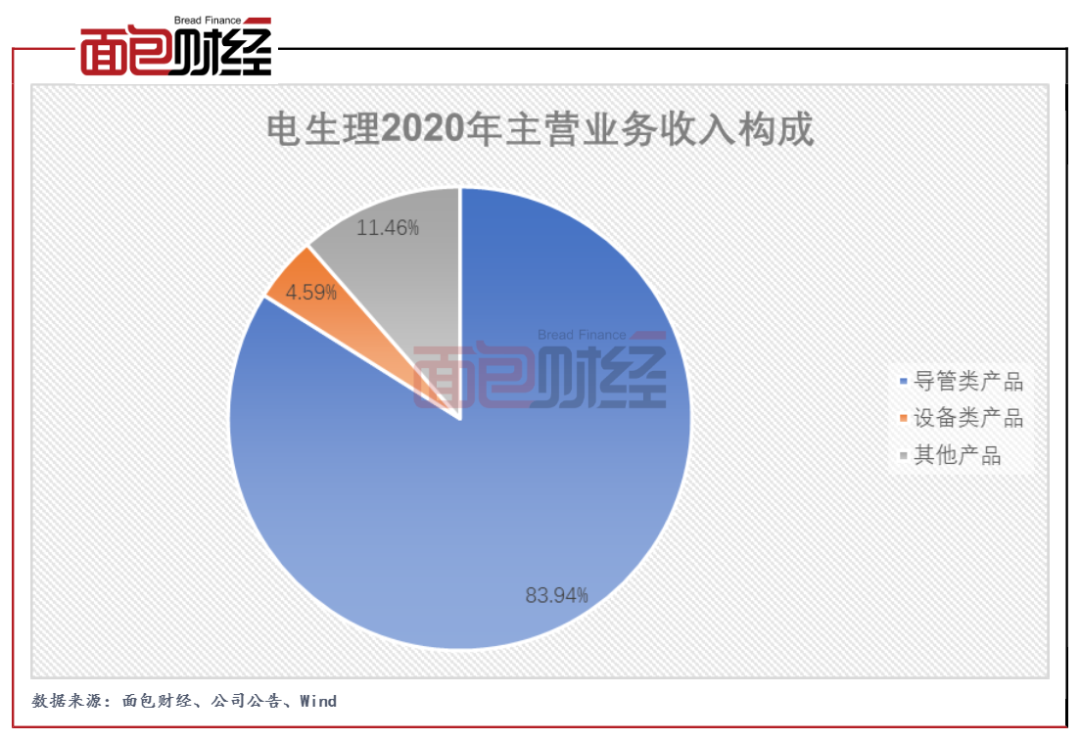 電生理的主要產品為心臟電生理診療器械,按照產品類型具體可分為心臟電生理設備與心臟電生理耗材。2020年,公司的主營業務收入主要來自于導管類產品(包括標測類、三維消融和二維消融導管),營收占比達到83.94%。其余營收來自于設備類產品和其他產品,主營業務收入占比分別為4.59%和11.46%。