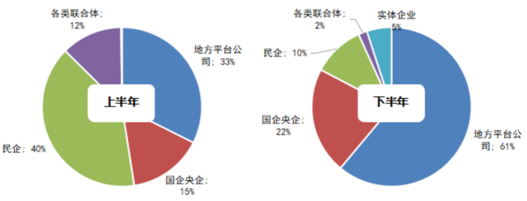 進入下半年以后,民企投資態度發生大幅轉變,拿地不再積極競拍至需要競配建的輪次,因此新增租賃用地建面大幅下降,占比下滑至10%;反之國企央企、地方平臺公司新增租賃用地的比例大幅提升,國企央企提升至22%,地方平臺公司更是提升至61%,成為各地新建租賃用房的主力。