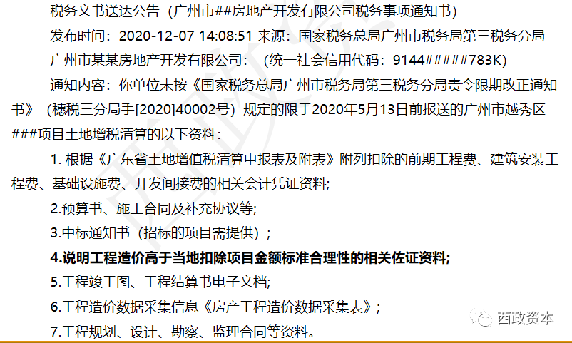 (2)年底的土增稅專項清算行動(設立專門的小組,鎮稅務局領導做組長):針對城市更新舊項目,計劃一個星期清算一個,除了有原著村民身份(外來落戶的都不算)的被拆遷款和政府主導的公益類舊改項目的拆遷款等可以列入土增稅外,其他都不可以(某頭部房企原列入土增稅扣除項目的拆遷款也已被剔除)。