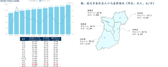 但換個(gè)角度來看,宿遷目前債務(wù)負(fù)擔(dān)在省內(nèi)處在一個(gè)相對(duì)較低的水平,存在一定的舉債空間,另外依托洋河和京東的布局,以及宿遷經(jīng)開區(qū)的產(chǎn)業(yè)生態(tài),地方經(jīng)濟(jì)有一定基本盤支撐,再加上承接蘇州產(chǎn)業(yè)轉(zhuǎn)移,整體產(chǎn)業(yè)的發(fā)展有一定推動(dòng)力,在淮海經(jīng)濟(jì)圈仍有不錯(cuò)的競(jìng)爭(zhēng)力,近10年人口尚可保持緩慢的凈流入。