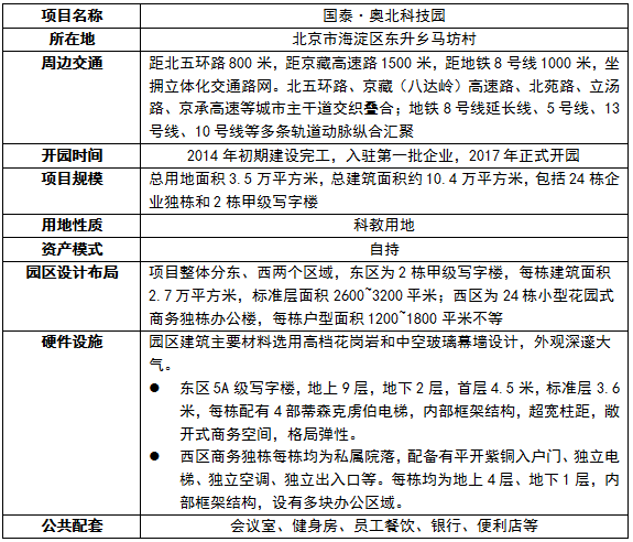 國泰·奧北科技園區基本情況表