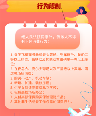 最后,債務(wù)人破產(chǎn)考察期內(nèi)需遵循的行為限制,基本與失信被執(zhí)行人/限制高消費(fèi)人群類似。可以看出正在逐步完善的失信被執(zhí)行人/限制高消費(fèi)體系也是在為全國(guó)范圍內(nèi)的個(gè)人破產(chǎn)制度的實(shí)施鋪路。