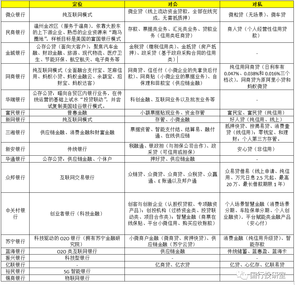四、民營銀行基本定位與業務簡析