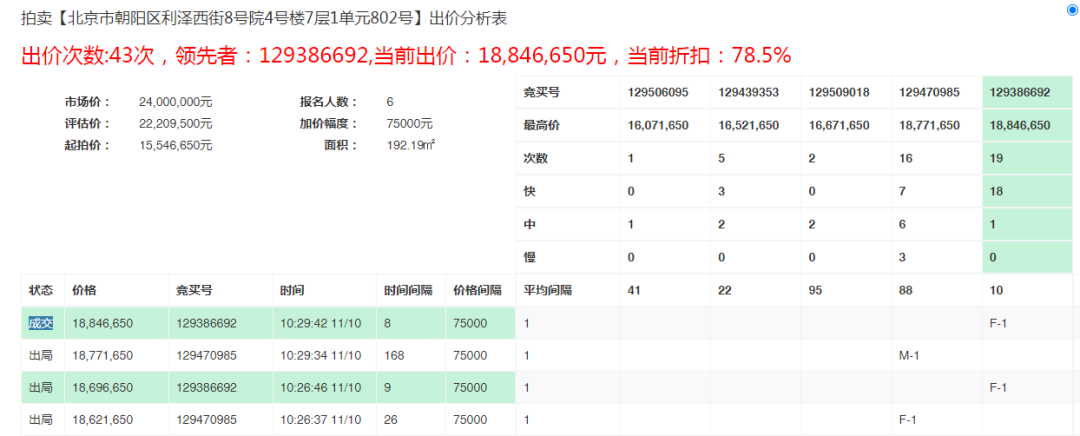最終本房經過了47輪出價,次延時36之后,順利拍出,最終的成交價與市場價也相差無幾,果然是居住用房除了價格之外,還要注重品質,畢竟誰還不是個精致的競買人呢?