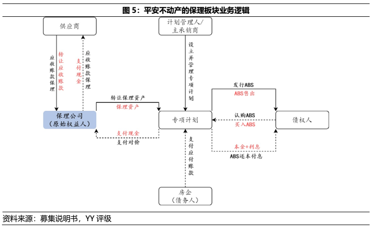 目前平安不動產(chǎn)的保理業(yè)務(wù)主要由深圳市前海平裕商業(yè)保理有限公司開展?,F(xiàn)階段商業(yè)保理公司主要依賴其股東進(jìn)行融資,而平安不動產(chǎn)背靠中國平安長久期、低成本的銀彈支持之下,則無后顧之憂,僅需聚焦在結(jié)構(gòu)化分層時的差額支付承諾風(fēng)險(xiǎn)。19年末、20年中,平安不動產(chǎn)的應(yīng)收賬款融資分別為7.76億元和39.32億元,即保理業(yè)務(wù)增長所致,也反映了相應(yīng)的風(fēng)險(xiǎn)。