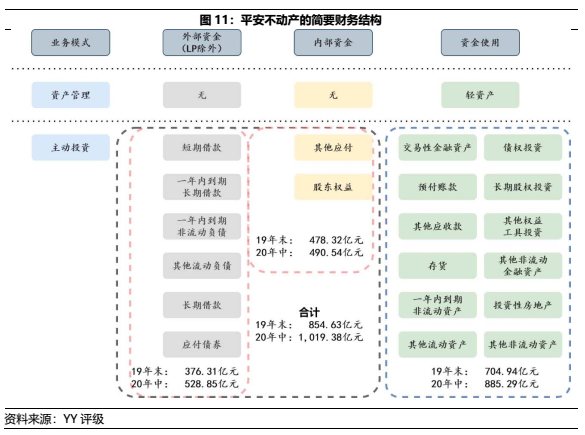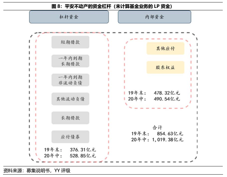 根據(jù)平安不動產(chǎn)20年中報(bào)公示的主要債權(quán)投資(未完全披露)收益5.90%,經(jīng)扣除平安不動產(chǎn)相關(guān)投后管理費(fèi)用和成本費(fèi)用,恐怕無法有效覆蓋資金成本。因此,布局股性地產(chǎn)投資業(yè)務(wù)和充份運(yùn)用杠桿成為了平安不動產(chǎn)提升收益率的必要手段。