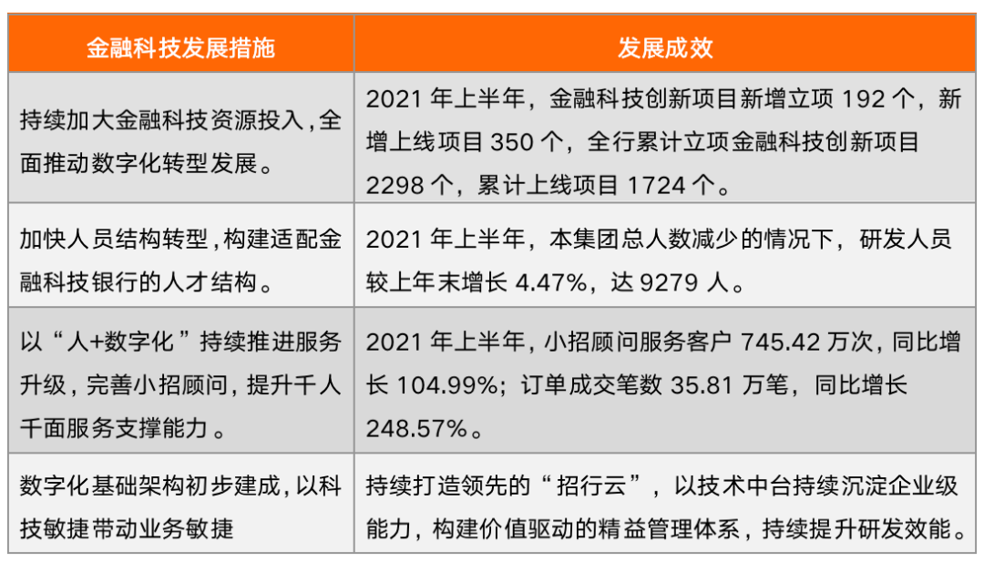 表 1:2021年招商銀行金融科技發(fā)展措施與成效