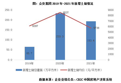 【立足浙江投資積極,未來2年壓降投資規(guī)模】2021年眾安集團共新增12個項目,新增土儲總建面193.4萬平方米,新增土儲總價111.0億元,全年拿地銷售比約0.40,高于百強平均的0.25。未來秉持短期審慎,長期樂觀戰(zhàn)略投資,2021年全年眾安集團新增土儲總貨值約280億元,未來3年新增貨值保持在160億/220億/450億元左右。