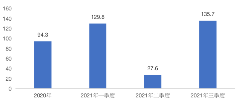 圖:2020年-2021年三季度并購總額