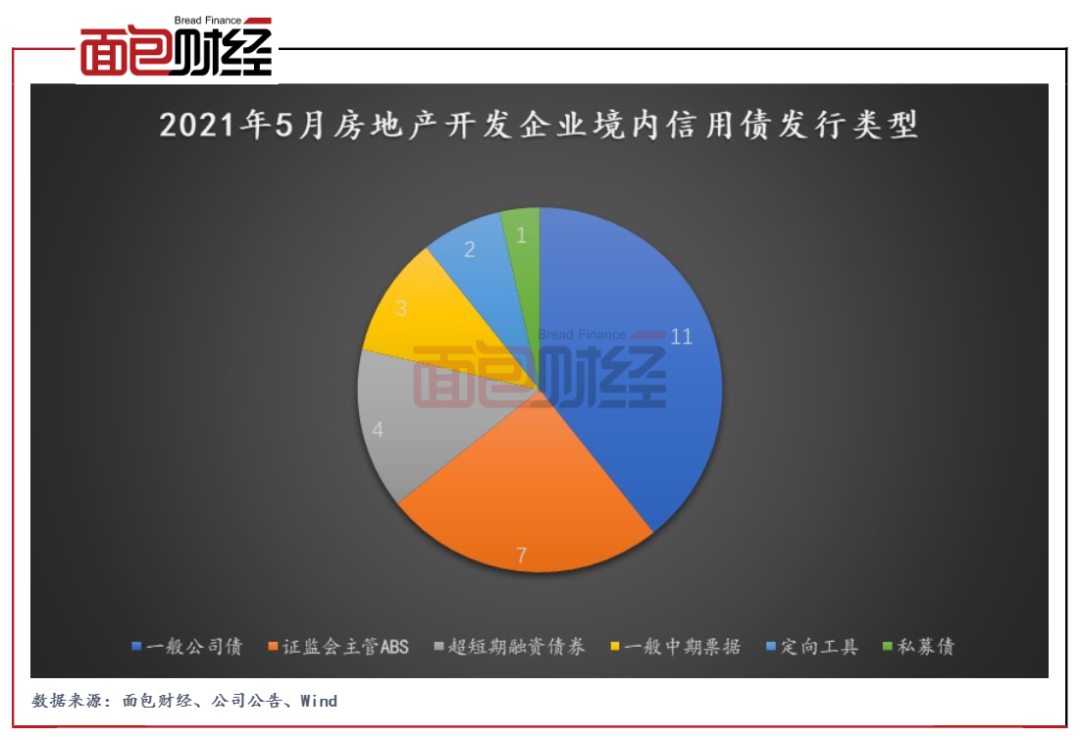 從占比上來看,2021年5月,國內(nèi)房地產(chǎn)開發(fā)企業(yè)共計(jì)發(fā)行信用債28只,其中一般公司債為房企信用債融資的主要渠道。5月,房企一般公司債共發(fā)行11只,占比39.29%;其次為證監(jiān)會主管ABS(Asset Backed Securitization)和超短期融資債券,當(dāng)月發(fā)行數(shù)量分別為7只和4只,占比分別為25%和14.29%。