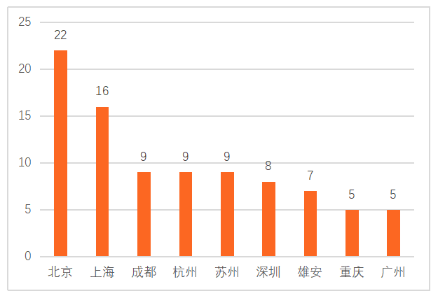 其中,四大一線城市共有51個(gè)試點(diǎn),占57%,而北京和上海試點(diǎn)總和就有38個(gè),占42%,其余擁有試點(diǎn)的城市除雄安外都為新一線城市。