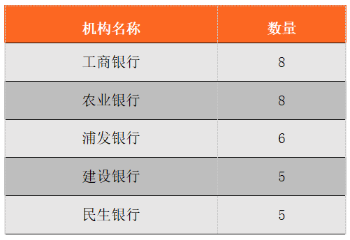 表5:金融機(jī)構(gòu)參與試點(diǎn)數(shù)量排名前五名