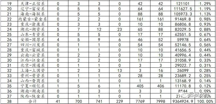 從上表看,地方AMC債權(quán)出讓的熱點地區(qū)仍舊是浙江、廣東、山東和江蘇,金額占比均超過了5%,其中浙江28.28%為絕對熱點區(qū)域。河南能排在第二位,是因為河南資產(chǎn)從東方河南省分公司手中接過一個1200多戶總債權(quán)額94億元左右的的打包,轉(zhuǎn)手給了子公司合伙企業(yè)河南信恒。而天津的出讓金額能排在第三位,是因為7月份福建的興業(yè)系從廈門的廈資系手中,接過了一個天津冶金集團總債權(quán)額94.45億的大包。