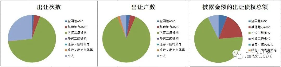 從出讓次數(shù)上看,地方AMC債權(quán)出讓大多數(shù)流向了內(nèi)資二級機構(gòu)和個人,但從戶數(shù)和金額上看,機構(gòu)占了絕對多數(shù),這與個人投資人的投資特征吻合,一般都是受讓單戶債權(quán),金額也不會太大。另外我們注意到,流向其他地方AMC的金額占比高達17.73%,這也客觀反應(yīng)了我國各地地方AMC實力的不同和對市場形勢判斷上的分歧。