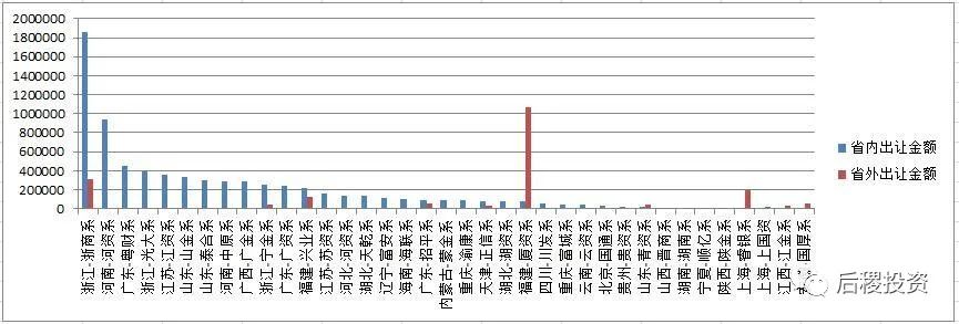 通過省內(nèi)外出讓對比,我們可以看出部分地方AMC業(yè)務(wù)的重心地區(qū),從上表可看出,浙商系、興業(yè)系、廈資系、睿銀系和國厚系在省外的出讓較其他地方AMC為多,這反應(yīng)了之前年份該地方AMC已經(jīng)在省外開始了布局。大多數(shù)地方AMC還是以當(dāng)?shù)貥I(yè)務(wù)為主,省外業(yè)務(wù)比較活躍的是浙商系、興業(yè)系、招平系、睿銀系和國厚系。