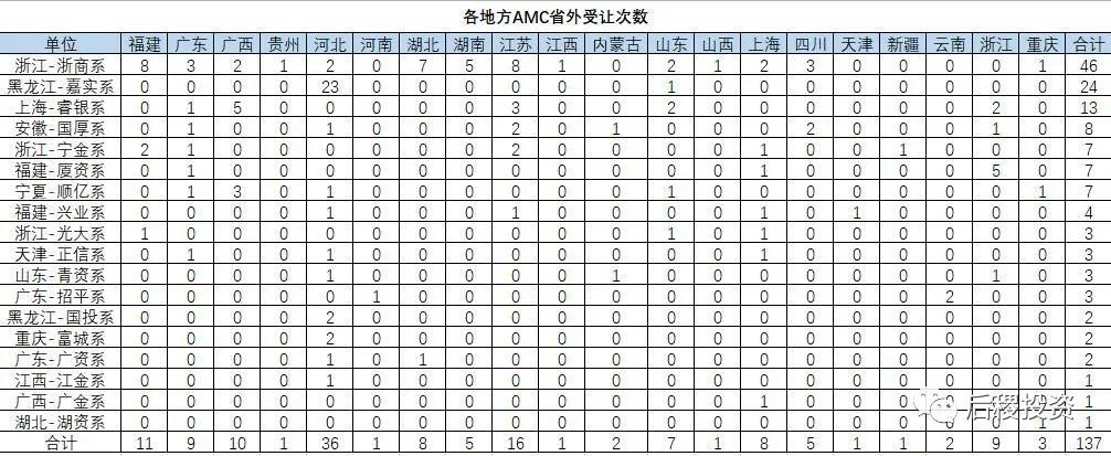從上圖可以看出,浙商系是債權(quán)不良資產(chǎn)省外招標的唯一主要貢獻方。