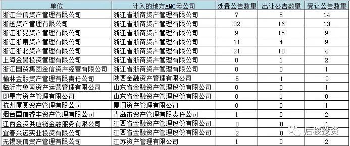 表1:納入地方AMC母公司一并統(tǒng)計的單位