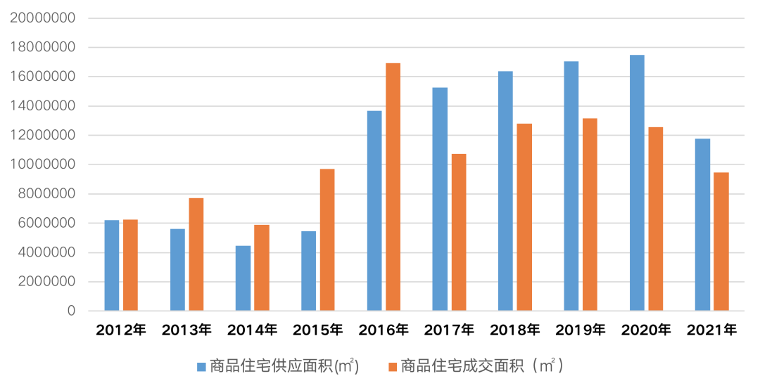 首先,鄭州樓市常年處于供大于求的狀態(tài)。從供求關(guān)系來看,2016年可以說是鄭州樓市的分水嶺。在此之前,需求持續(xù)釋放,此后成交規(guī)模大幅上升后,鄭州樓市便開始了漫長的回調(diào)。商品住宅成交規(guī)模逐年走低,降價(jià)促銷、低首付等以價(jià)換量的策略層出不窮。2021年商品住宅成交面積僅為948萬平方米,較2020年下降24.45%。