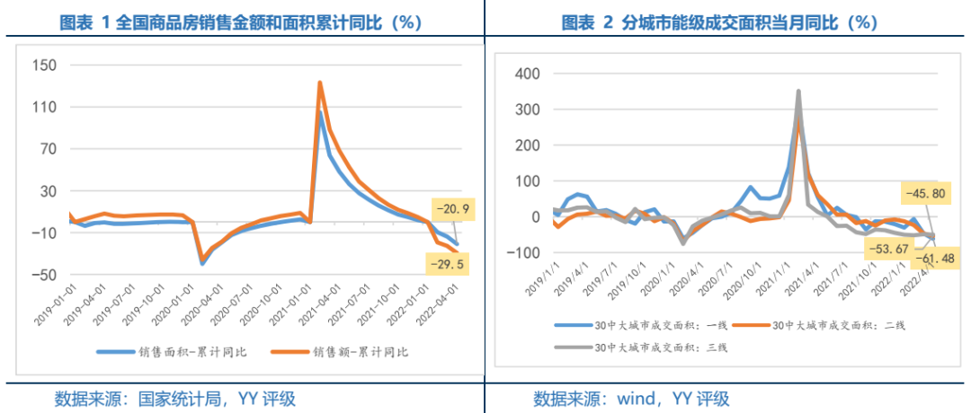 1.銷售端:1-4月仍在大幅下滑,多地疫情管控加劇去化問(wèn)題