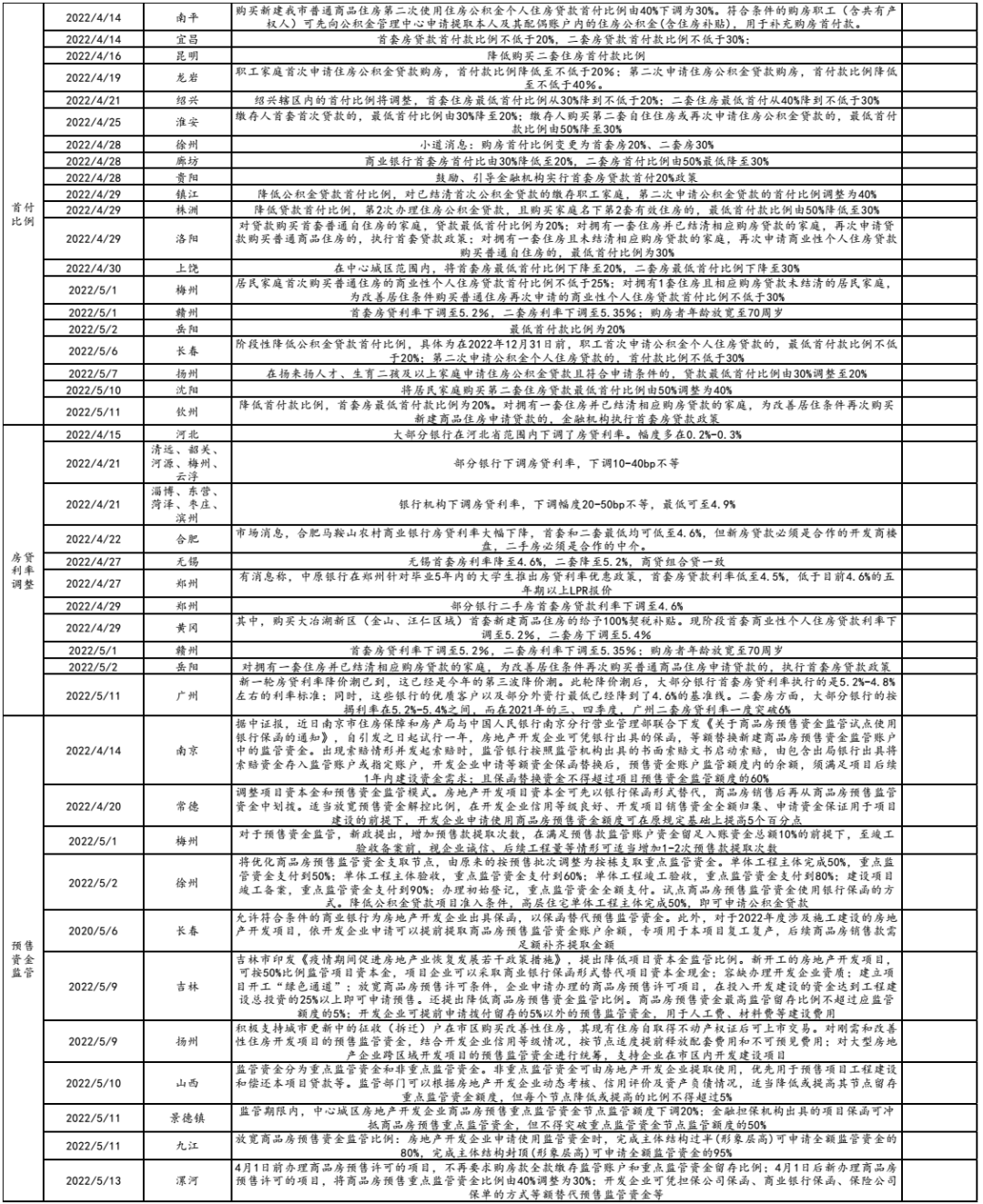 截至5月16日,22年以來(lái)全國(guó)累計(jì)出臺(tái)紓困政策近300次,當(dāng)前樓市松綁較之前進(jìn)入第二階段,更多省會(huì)強(qiáng)二線城市加入,如成都、杭州、蘇州等,更有長(zhǎng)沙提出的創(chuàng)新思路即“鼓勵(lì)存量房做租賃房”,但這些政策實(shí)操層面有諸多限制,且更大目的在下行時(shí)托市,針對(duì)于遠(yuǎn)郊和二手房市場(chǎng),邊際改善程度有限。