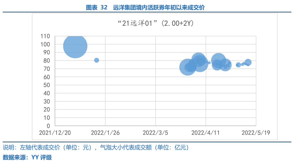 民企爆雷引發(fā)的市場(chǎng)負(fù)面情緒波及混改企業(yè),遠(yuǎn)洋集團(tuán)的表外債務(wù)規(guī)模較大構(gòu)成隱憂,而近期公募基金等機(jī)構(gòu)出庫(kù)對(duì)公司存量債券估值造成了較大上行壓力,年初以來(lái)“21遠(yuǎn)洋01”價(jià)格已由98元跌至70元檔位。