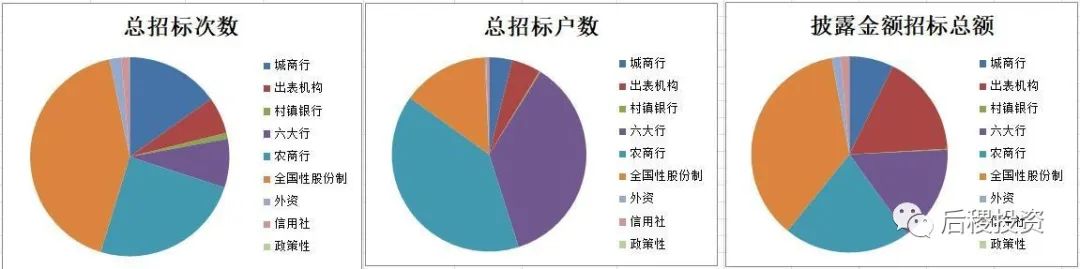 銀行招標次數前五的省份是山東、浙江、廣東、福建和江蘇,戶數前五的省份是山東、山西、廣東、河南和浙江,而披露的金額前五的省份是廣東、山東、浙江、江蘇和福建,山西和河南排第六和第七。總體來說除傳統成交活躍大省外,河南和山西等中部地區省份的銀行的債權招標力度也較大。
