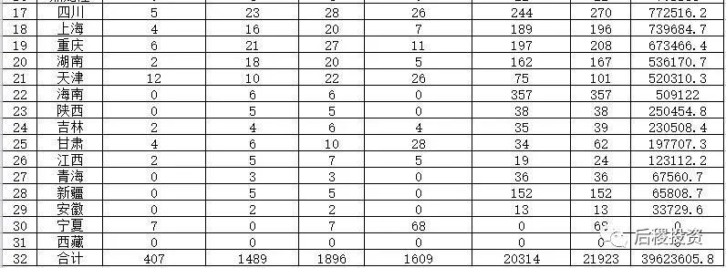 從上圖看,銀行出讓成交次數前五的省份是山東、浙江、廣東、江蘇和河北;戶數前五的省份是浙江、江蘇、福建、河南和河北,廣東排第六;而出讓總額排名前五的省份是浙江、河南、廣東、山東和江蘇,福建、遼寧、河北、山西緊隨其后,較其他地區為高。仍舊可以看出東部地區省份,銀行的出讓力度較其他地區為高,當然這也與我國的經濟總量分布有關。