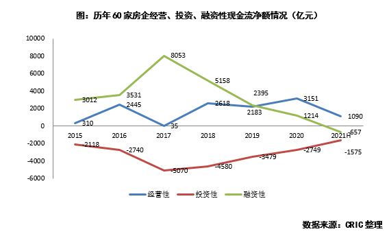 2021上半年融資性現(xiàn)金流首次為凈流出