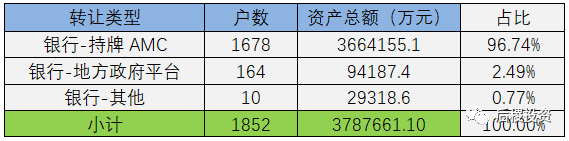 按轉(zhuǎn)讓及受讓主體類型分(只考慮有明確債權(quán)金額部分):