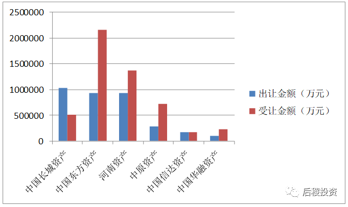 從上圖看,19年東方資產(chǎn)受讓銀行資產(chǎn)體量最大,所占比重接近一半。