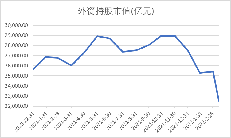 本輪A股大跌,與外資減持有直接關系,3月份至今,境外資金已經凈流出645億元。