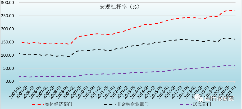 1、2020年為應對疫情,宏觀杠桿率大幅抬升(實體經(jīng)濟部門、非金融企業(yè)部門和居民部門的杠桿率年內(nèi)最高分別上升24.70個百分點、13.30個百分點和6.10個百分點),因此自2020年下半年以來,降低宏觀杠桿率基本上就已經(jīng)成為政策導向,實際上自2020年三季度以來,宏觀杠桿率已經(jīng)連續(xù)兩個季度下降了。