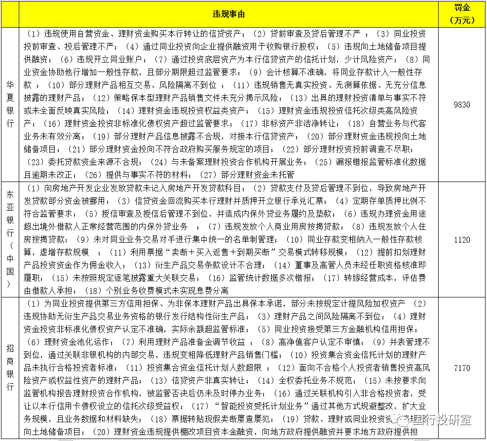 4、持續(xù)三年開展全國性房地產(chǎn)專項檢查,如2021年5月21日(處罰日期為2021年5月17日)銀保監(jiān)會公布對5家銀行開出的合計3.66億元罰單(主要違規(guī)原因便是這些銀行違規(guī)開展房地產(chǎn)融資業(yè)務),這5家銀行分別為華夏銀行(罰款9830萬元)、渤海銀行(9720萬元)、中國銀行(8761.355萬元)、招商銀行(7170萬元)、東亞銀行(1120萬元)。