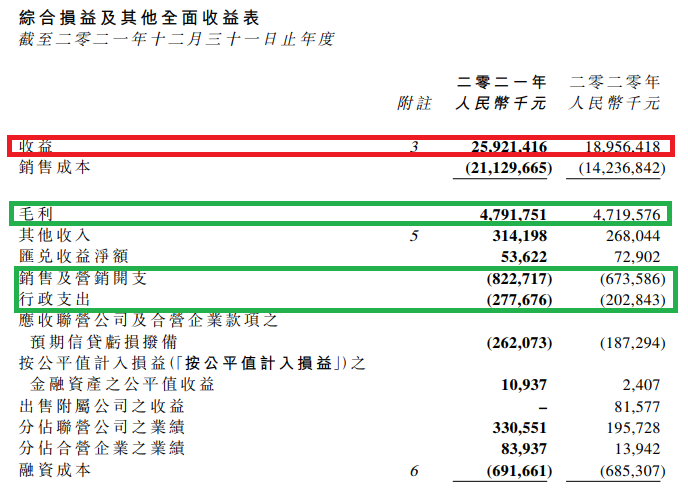 何以至此?我們看更多細(xì)節(jié),總的銷售成本從2020年的142.37億元,增至2021年的211.30億元。
